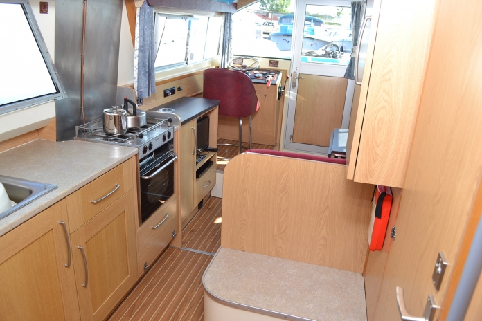 The deal hire boat for couples or smaller parties. Single floor level throughout. Front and rear access for easy mooring. Warm air heating. 12 Volt system. Teak and Holly Flooring