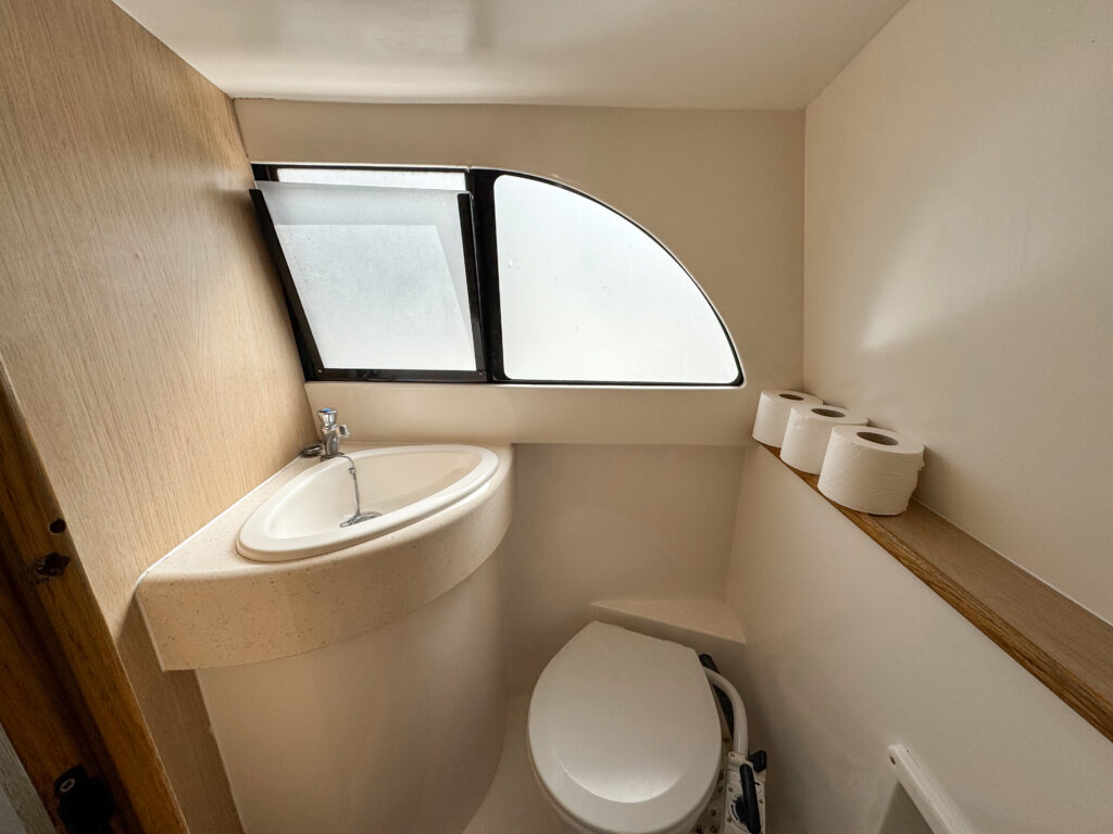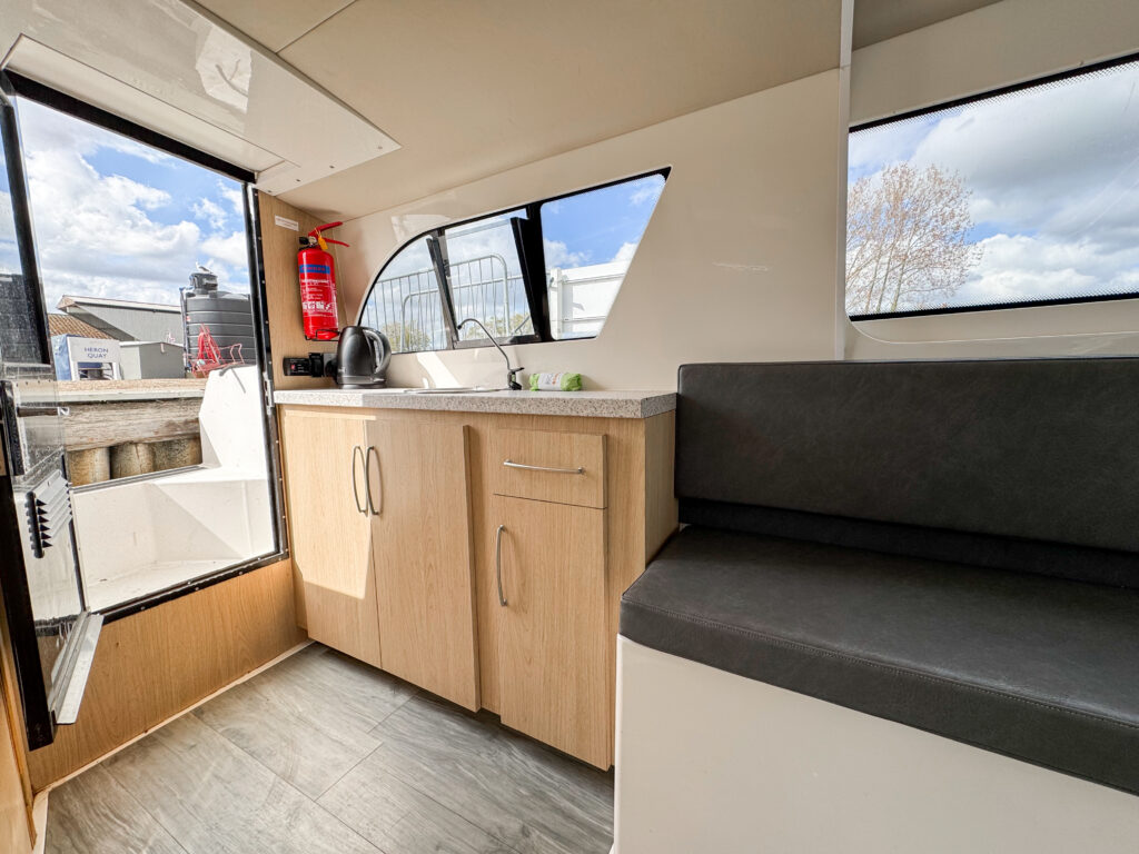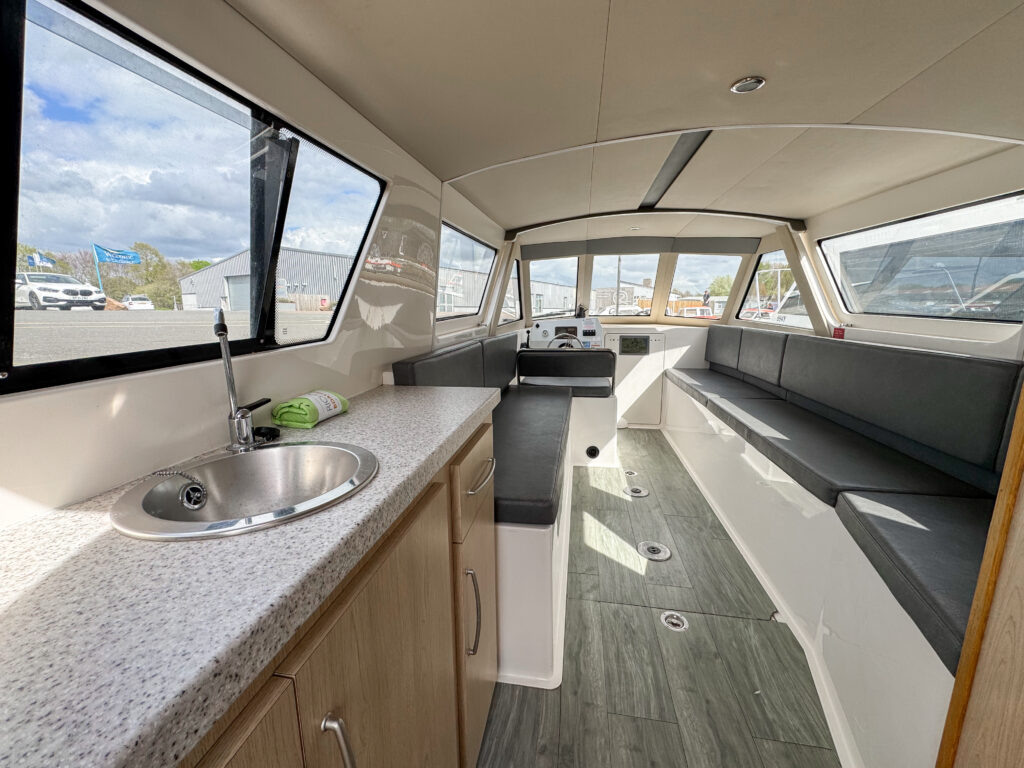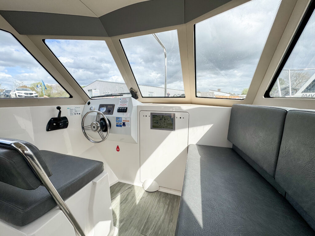 The light, spacious cabin is fully enclosed with a full sliding canopy, offering shelter when needed while keeping the boat bright and airy. Thoughtfully designed onboard facilities make this an excellent choice for longer, leisurely days on the water.
