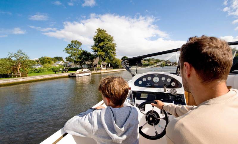 Depart from Richardson’s Wroxham Marina, The Rhond, Hoveton, Norwich NR12 8UE